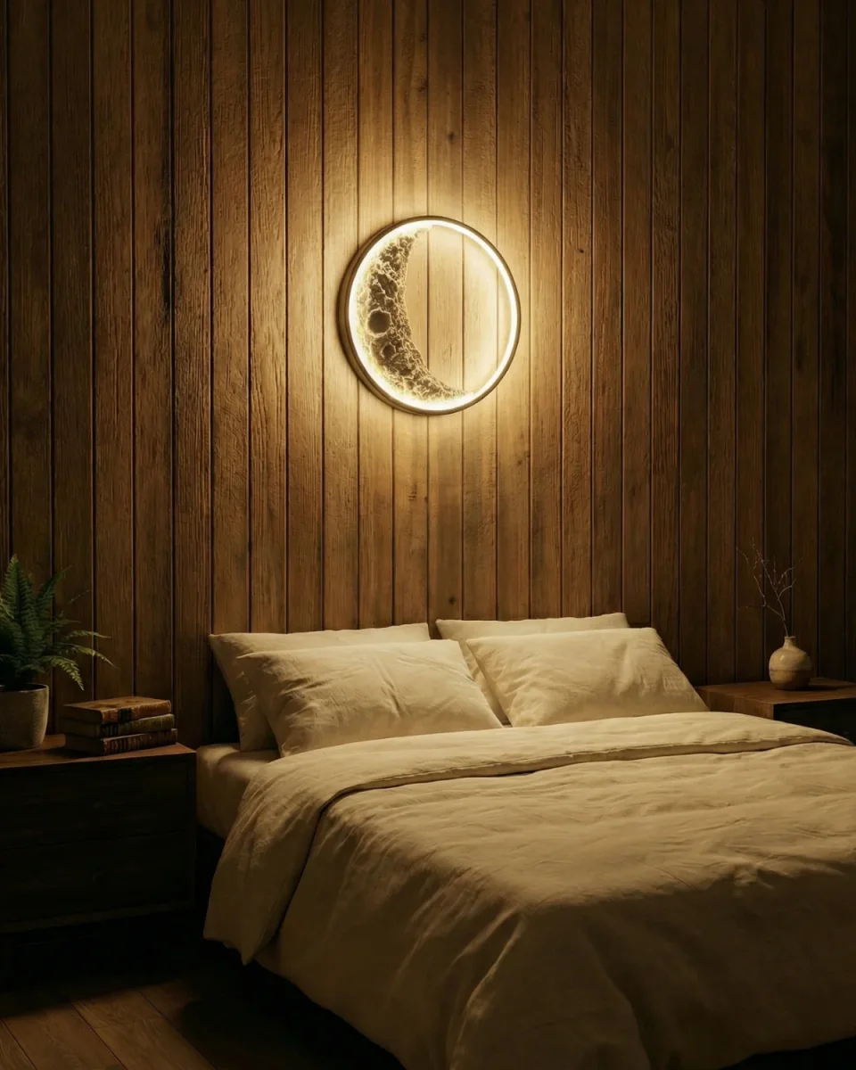 A crescent-shaped wall lamp that casts a soft, ambient glow across exterior surfaces. Its curved silhouette adds a poetic accent to modern and resort-style spaces. Crafted for outdoor use, it blends durability with atmospheric lighting.