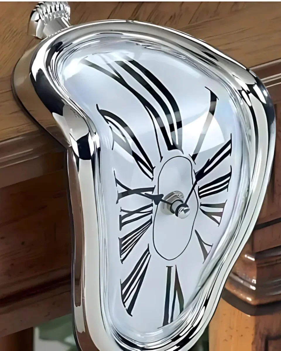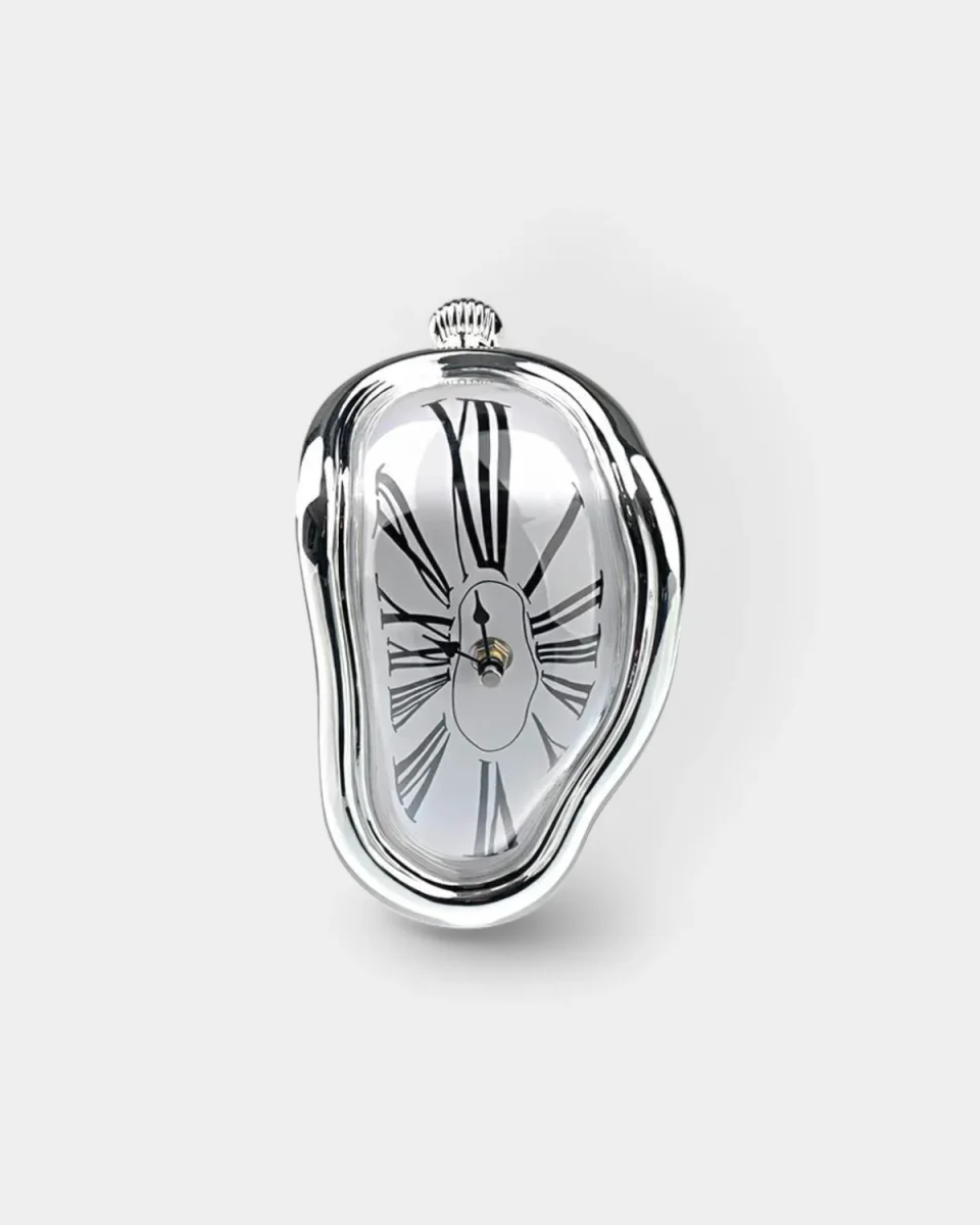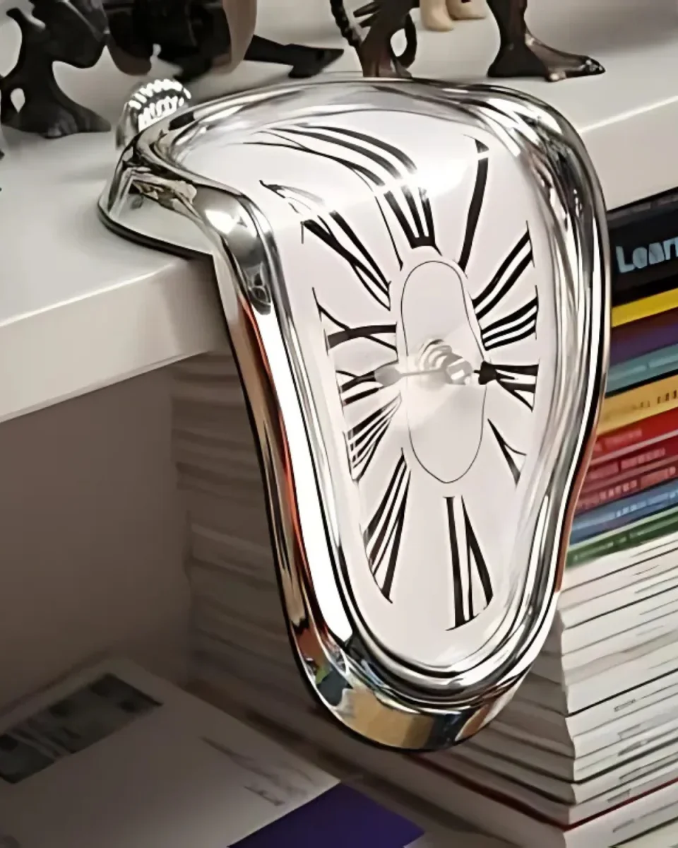 Inspired by the surreal artistry of Salvador Dalí’s The Persistence of Memory, Le Temps Distillé is a strikingly unique clock designed to add a touch of avant-garde sophistication to your space. With its flowing, distorted design, this clock transcends functionality, turning timekeeping into an expression of art. Crafted to sit elegantly on any shelf, desk, or table, it becomes not just a clock but a conversation piece that redefines your surroundings. The melting effect, reminiscent of Dalí’s famous painting, captures the fluidity of time in a visually stunning way.